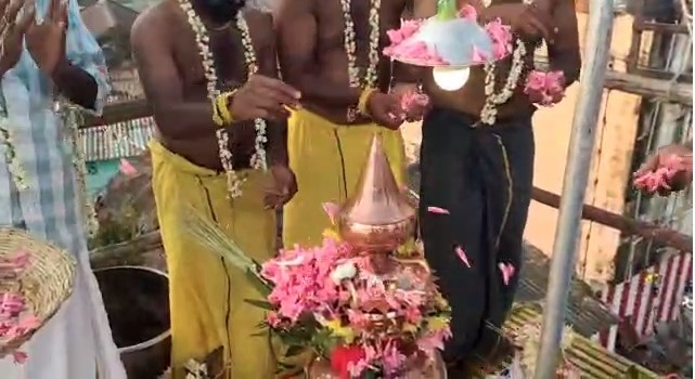 சுமார் இருநூறு ஆண்டுகள் கடந்திருந்த நிலையில், இப்பகுதி மக்கள், இக்கோயிலுக்கு கும்பாபிஷேகத்திற்கான திருப்பணிகள் செய்து நிறைவு செய்தனர் அதன் பின்னர், நேற்று 12ம் தேதி, காவிரியில் இருந்து புனிதநீர் கொண்டு வரப்பட்டு, மகா கணபதி பூஜையுடன் யாகசாலை பூஜைகள் தொடங்கி, கணபதி ஹோமம் மற்றும் நவக்கிரக ஹோமமும் நடைபெற்றது
