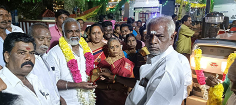 முன்னதாக அப்பேரணியை அவ்விழாவிற்கு சிறப்பு அழைப்பாளராக வந்து பங்கேற்ற பொன்னேரி தொகுதி காங்கிரஸ் சட்டமன்ற உறுப்பினர் துரை சந்திரசேகருக்கு ஐயப்ப பக்தர்கள் குழு மற்றும் அப்பகுதி மக்கள் அவருக்கு மாலை அணிவித்து மரியாதை செலுத்தினார்கள் தொடர்ந்து அப்பேரணியை எம்.எல்.ஏ. துவக்கி வைத்தார்,