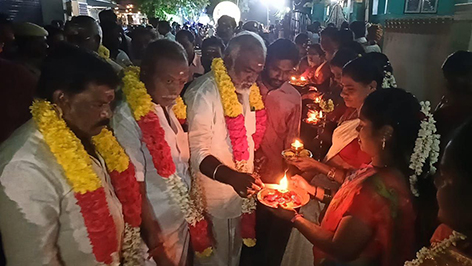 அதுப்போன்று நடப்பாண்டிற்கான 43 ஆம் ஆண்டு திருவிளக்கு பூஜை அப்பகுதியில் உள்ள பெண்கள் திருவிளக்கினை ஏந்தி ஊர்வலமாக அணி வகுத்து வர அவ்விழா வெகுச்சிறப்பாக நடைபெற்றது.