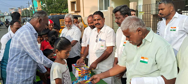இந்தியா முழுவதும் இன்று குடியரசு தின விழாவை வெகு விமரிசையாக அரசு உள்ளிட்ட அனைவரும் கொண்டாடி வருகின்றனர். அதன் ஒரு பகுதியாக செங்கல்பட்டு மாவட்டம் மறைமலைநகர் அருகே காந்திநகர் எட்டாவது வார்டு பகுதியில் சமூக ஆர்வலர் காந்திநகர் வேலு என்கிற வேலாயுதம் தலைமையில் நம் நாட்டின் 75 ஆம் ஆண்டு குடியரசு தின விழாவினை வெகுச் சிறப்பாக அப்பகுதி மக்கள் கொண்டாடினார்கள்.