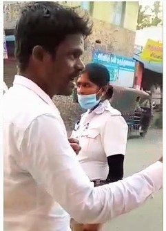 இந்நிலையில், கும்பகோணத்தில் வழக்கறிஞராக இருக்கும் ராபர்ட் என்பவர் நேற்று மாலை பழைய பாலக்கரையில் போக்குவரத்து நெரிசலை ஏற்படுத்தும் வகையில் அவரது நடவடிக்கை இருந்ததை பார்த்த அங்கு பணியில் இருந்த துர்கா என்ற பெண் காவலர் பல முறை அங்கிருந்து கடந்துச் செல்ல எச்சரித்துள்ளார்.