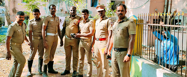 மேலும் அம்மரத்தின் கீழ் பகுதியில் கிணறும் இருந்ததால் அப்பகுதியினர் அக் காகத்தை மீட்பதில் சிரமம் இருந்து வந்தது. இந் நிலையில் இன்று அவ்வழியாக ரோந்து பணிக்கு கலைஞர் நகர் காவல் நிலைய உதவி ஆய்வாளர் செளந்தரராஜன், தலைமை காவலர் நாராயணன் உடன் சென்றுவுள்ளார். அப்போது அங்கிருந்த சிறுவர்கள் இது குறித்து தெரிவிக்க உடனடியாக காவலர்கள் அவசர கட்டுபாட்டு மையத்திற்கு தொடர்புக்கொண்டு தீயணைப்பு அதிகாரிகளுக்கு தகவல் கொடுத்துள்ளனர்.