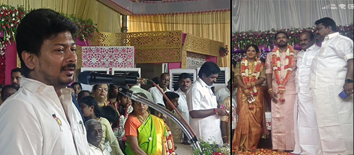 மேலும் இவ்விழாவில் சிறப்பு அழைப்பாளராக பங்கேற்ற தமிழ்நாடு இளைஞர் நலன் மற்றும் விளையாட்டு மேம்பாட்டுத்துறை அமைச்சர் உதயநிதிஸ்டாலின் தலைமையில், தியாக சுரேஷ் மற்றும் சகோதரர் தியாக அன்பழகன் நிர்மலா இல்லத் திருமணத்தை நடத்தி வைத்து மணமக்களை வாழ்த்தி உரை நிகழ்த்தினார்.