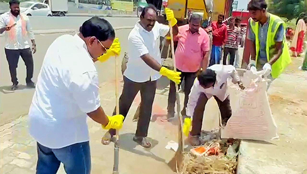 மேலும் அதனைத்தொடர்ந்து, துப்புரவு தொழிலாளர்களை ஊக்குவிக்கும் வகையில் அவர்களுடன் இனைந்து நகர்மன்ற தலைவர் மற்றும் நகராட்சி ஆணையர் ரமேஷ் ,சுகாதார ஆய்வாளர் உள்ளிட்டோர் குப்பைகளை சேகரிக்கும் பணியில் ஈடுபட்டார். தொடர்ந்து தூய்மை பணியாளர்கள் தூய்மை நகருக்கான மக்கள் இயக்கம் குறித்து உறுதி மொழி ஏற்றனர்.
