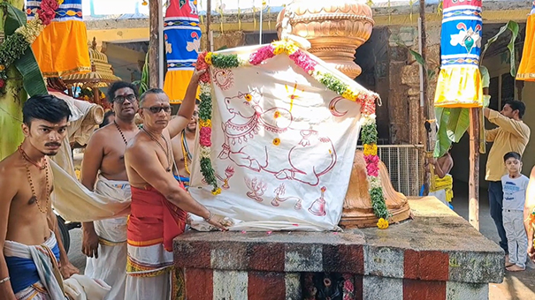 அதுப்போன்று, இவ்வாண்டுக்கான விழா, இன்று காலை பஞ்சமூர்த்திகள் சிறப்பு அலங்காரத்தில் கொடிமரத்தின் அருகே எழுந்தருள, கொடிமரத்திற்கு பால், தயிர், மஞ்சள், சந்தனம், உள்ளிட்ட பல்வேறு வாசனை திரவியங்களை கொண்டு சிறப்பு அபிஷேகம் செய்யப்பட்டு நந்தியம்பெருமான் பொறிக்கப்பட்ட திருக்கோடி மங்கள வாத்தியங்கள் இசைக்க, வேத மந்திரங்கள் முழங்க, கொடி ஏற்றப்பட்டு, மகா தீபாராதனை நடைப்பெற்றது.