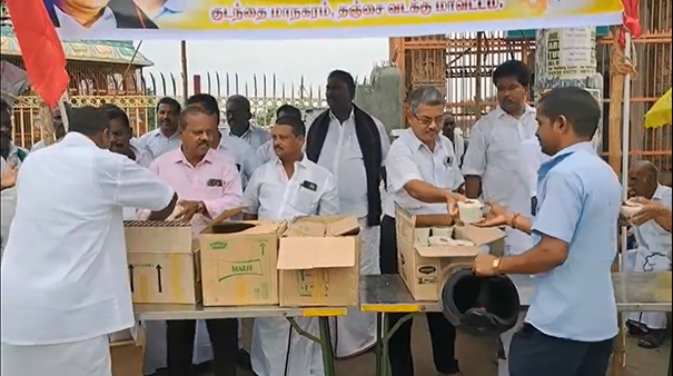 அந்நாளினைக் கொண்டாடும் விதமாக கும்பகோணத்தில் உள்ள மகாமக குளம் அருகில் உள்ள அண்ணா சிலைக்கு மாநில துணைச் பொதுச்செயலாளர் முருகன், தலைமையில் கட்சி நிர்வாகிகள் பொறுப்பாளர்கள் மற்றும் தொண்டர்கள் என திரளானவர்கள் அண்ணாவின் திருவுருவச் சிலைக்கு மலர்மாலை அணிவித்து மரியாதை செலுத்தியும், தொடர்ந்து அப்பகுதியில் பட்டாசு வெடித்தும் பொது மக்களுக்கு இனிப்பு மற்றும் அன்னதானம் வழங்கியும் கொண்டாடினார்கள்.