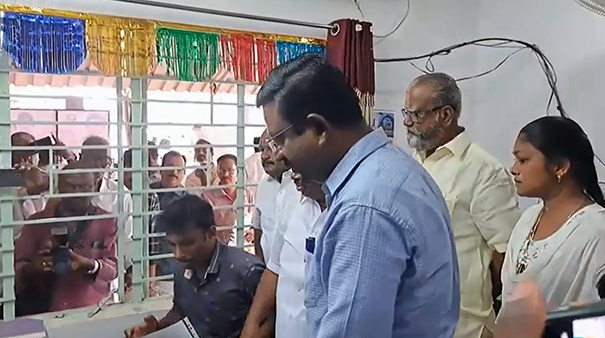 கும்பகோணம் சட்டமன்ற உறுப்பினர் அலுவலகத்தில் பொதுமக்களின் பயன்பாட்டிற்காக இ சேவை மையம் தொடங்கப்பட்டுள்ளது. மேலும் அதற்கான திறப்பு விழா இன்று அவ்வலுவலக வளாகத்தில் நடைப்பெற்றது. அதனை மாவட்ட ஆட்சியர் தினேஷ் பொன்ராஜ் ஆலிவர், ரிப்பன் வெட்டி திறந்து வைத்தார்.