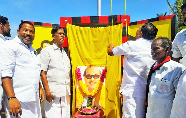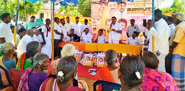 தொடர்ந்து கட்சியின் கொடியினை ஏற்றி வைத்து புதிதாக நிறுவப்பட்டுள்ள கல்வெட்டை திறந்து வைத்தார். அதனைத் தொடர்ந்து கிராம பெண்களுக்கு புடவைகளை வழங்கினார்.