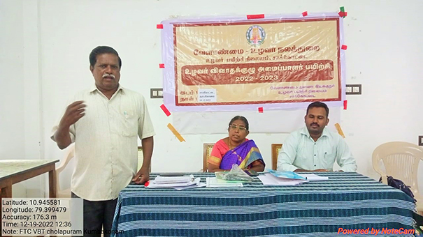 இந்நிகழ்வில் உழவர் விவாத குழு அமைப்பாளர் தலைவர் ராம தியாகராஜன் வரவேற்புரை நிகழ்த்தினார். மேலும் இப்பயிற்சியில் பங்கேற்ற வேளாண்மை துணை இயக்குனர் பாலசரஸ்வதி விவசாயிகளுக்கு பயிற்சி அளித்தார்.