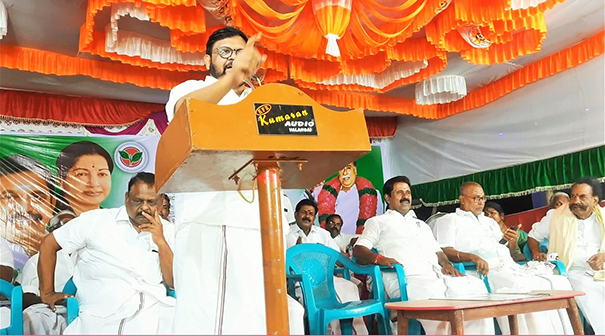 அதுப்போன்று கமலஹாசன் மக்கள் நீதி மையம் எனும் கட்சி தொடங்கினார். சரி அவர் நல்லவர் என நினைத்தேன் ஆனால் விக்ரம் படத்தை உதயநிதி ஸ்டாலிடம் 200, 300 கோடிக்கு விற்றுள்ளார். நான் அப்பவே சொன்னேன் சப்பானியும் பரட்டையும் கட்சி தொடங்கப் போறான்னு கேள்விப்பட்டு குவைத்தில் மயில் செத்து போயிட்டு, மயில் என்பது ஸ்ரீதேவி, சப்பானி என்பது கமலஹாசன், பரட்டை என்பது ரஜினி, நல்லவேளை ரஜினி கட்சி தொடங்கவில்லை, சப்பானி தொடங்கிய கட்சி சப்பானியா போச்சு எனவும் அனைத்து கட்சிகளையும் காட்டமாக விமர்சித்து பேசினார். மேலும் இந்த நிகழ்வில் 3000-க்கும் மேற்பட்ட கட்சி நிர்வாகிகள் மற்றும் தொண்டர்கள் பலர் கலந்து கொண்டனர்.